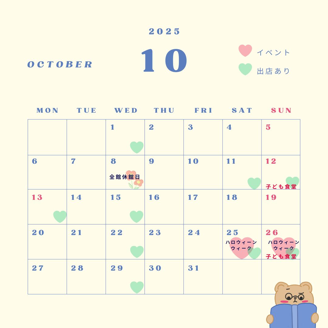 10/1(水)、11(土)、15(水)、22(水)、25(土)、29(水)