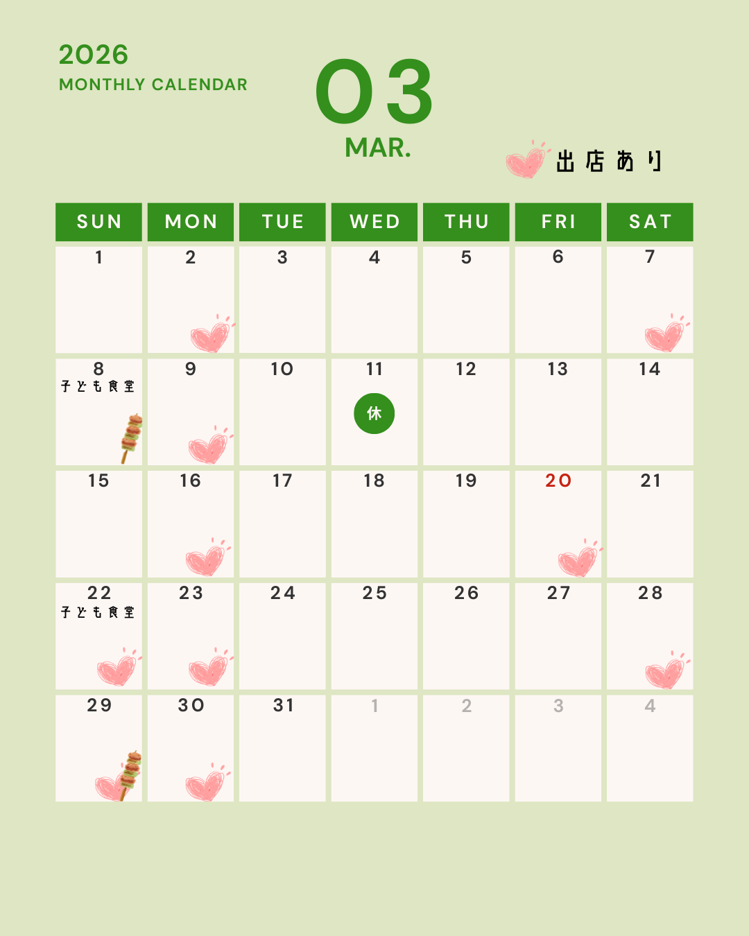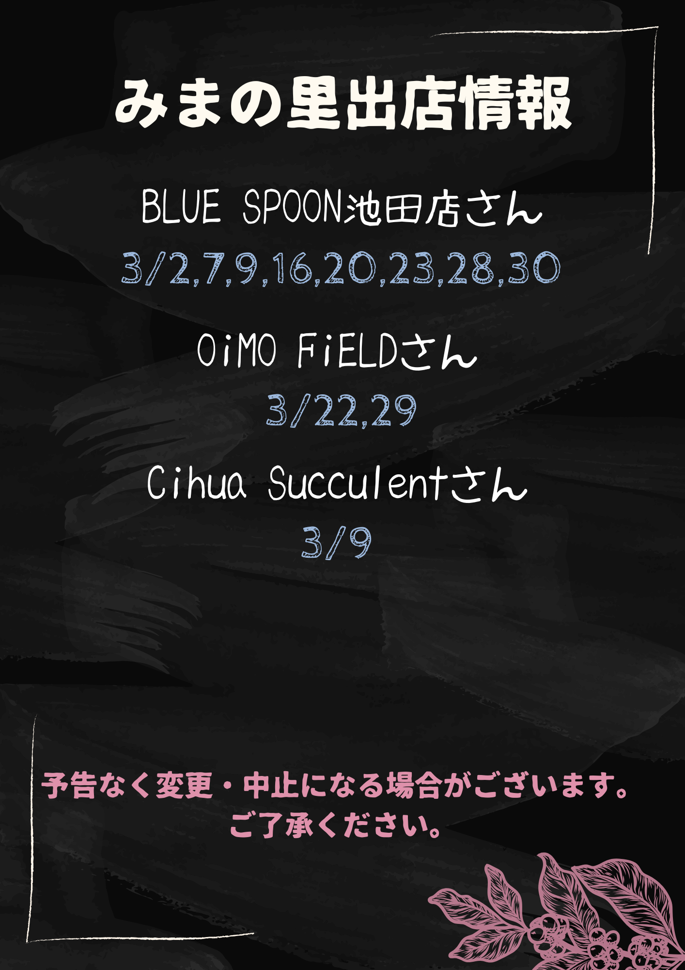 3月のスケジュールをお知らせします📅
